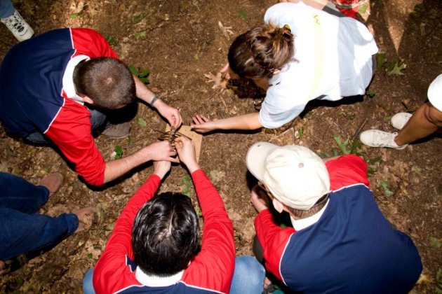 De groep wordt verdeeld in teams, die elk op een eigen helft van het terrein zijn (oost en west). Ze kunnen alleen met elkaar communiceren d.m.v. portofoons. Nu is het de bedoeling dat de teams elkaar lokaliseren en vervolgens via aanwijzingen door de portofoon van opdracht naar opdracht loodsen.